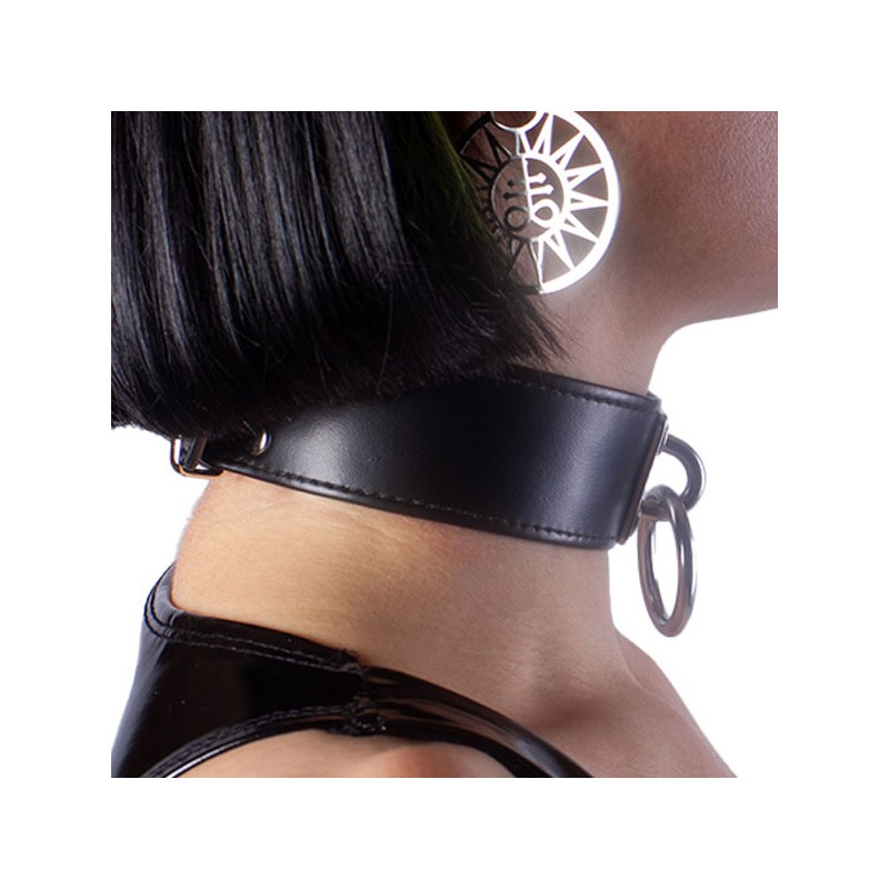 Collar súper ancho de 4,5 cm disponible en cuero o en PVC cristalino y con tres tamaños de argollas, unas argollas muy especiales ya que van unida a un placa de acero con 4 puntos remachados al cuero , elige tu talla para que se ajuste a la perfecciona tu diámetro de cuello . Estos collares se hacen bajo pedido de manera artesanal el tiempo estimado de entrega son 3 días, si deseas una medida especial, abalorios, pinchos, tachuelas, color de contraste, puedes escribirnos un correo y te daremos presupuesto.
