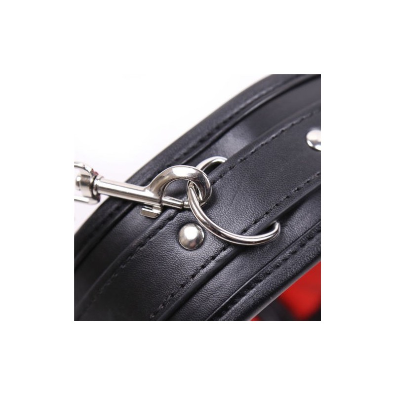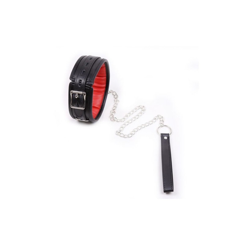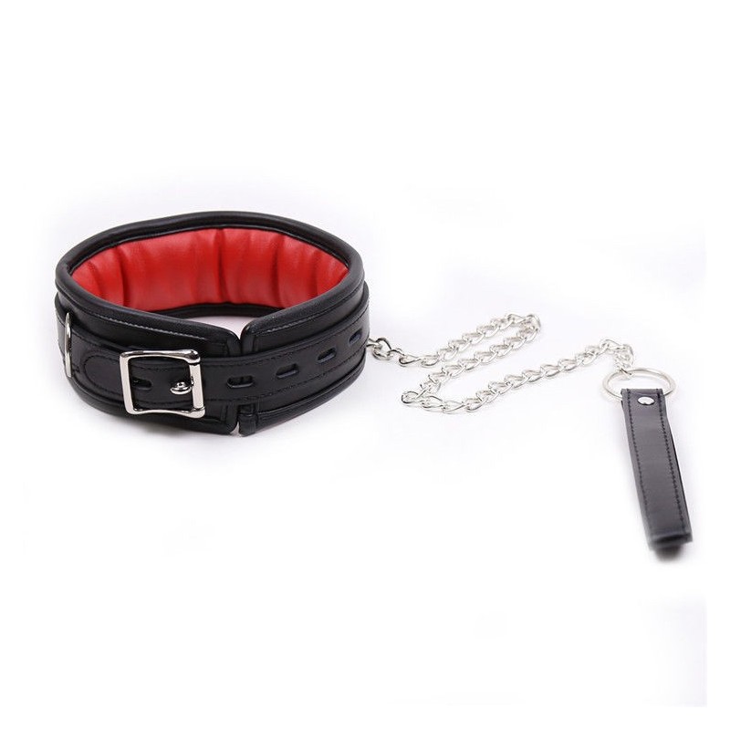 Pasea a tu sumis@ con este fabuloso collar de cuero con correa incorporada. De color rojo en el interior y bien acolchado que lo hace cómodo y llevadero. Puedes ajustarlo al cuello con su hebilla además de incorporar mas ganchos gracias a su argolla adicional.