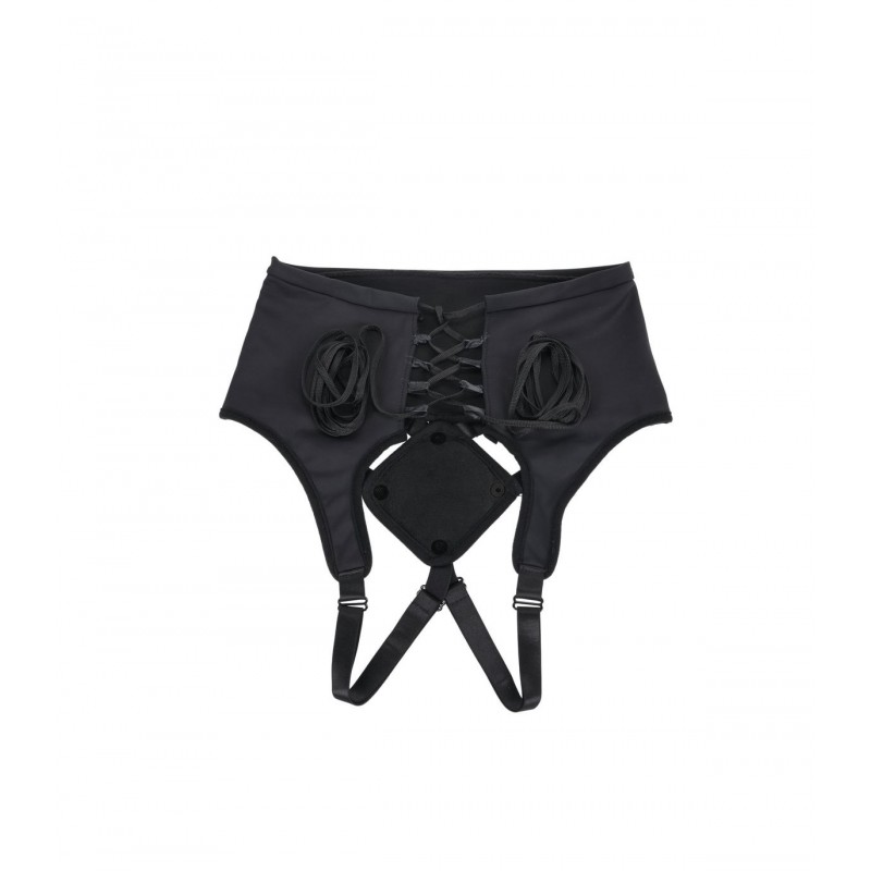 Explora una intimidad intensa con la combinación perfecta de comodidad y control con el arnés tipo corsé de cintura alta. Diseñado con un tejido elástico de alta calidad, este suave material se adapta cómodamente al cuerpo y cuenta con cordones ajustables para un ajuste perfecto.